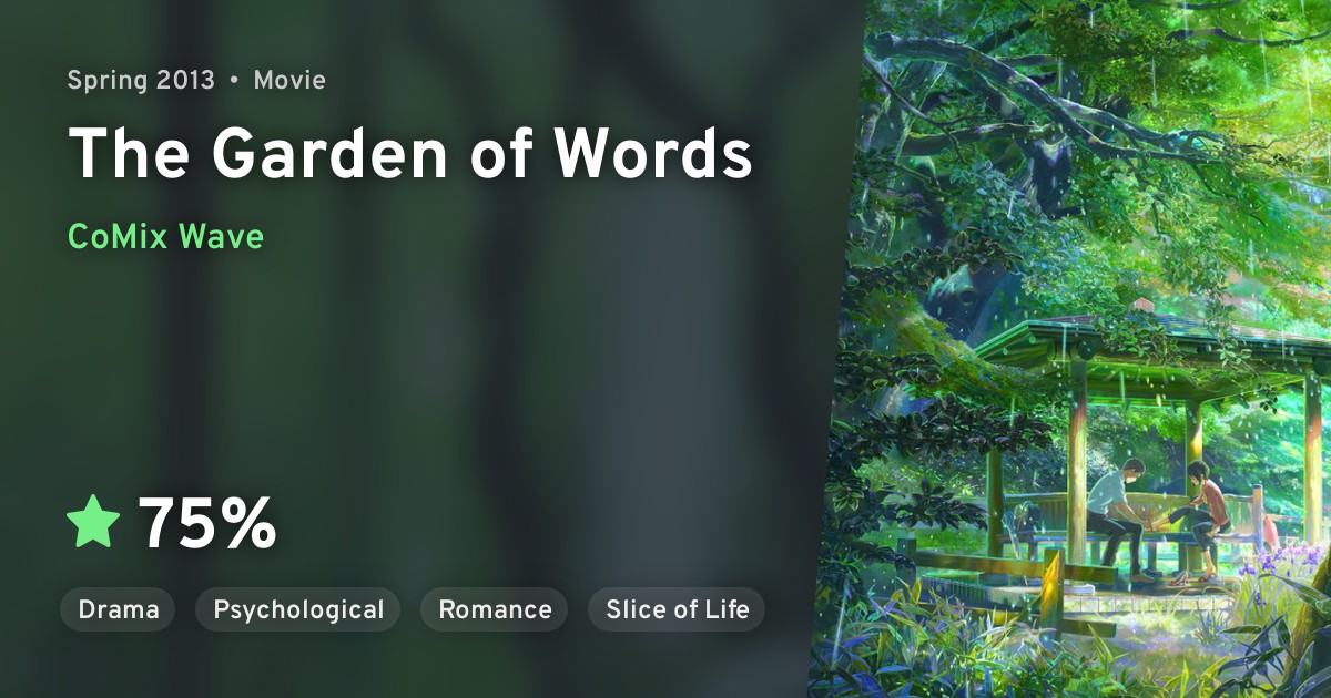 Some people revel and play in the rain; others dread it and hide at the first drop. For high school student Takao, a summer shower is a source of artistic inspiration… but when he skips school in order to sketch in a rainy garden, Takao finds an even greater muse in Yukino, an older woman who seems adrift in the world. Despite the difference in their ages and lives, they strike up a comfortable relationship that slowly evolves as they randomly meet in the same garden whenever it rains. But with the rainy season coming to a close, Takao wonders if there's enough time left to put his feelings...